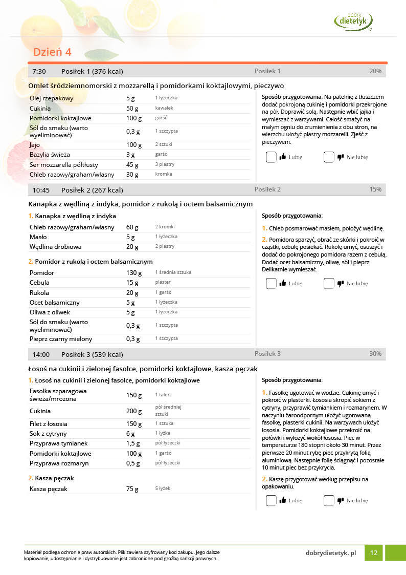 • w formie precyzyjnych jadłospisów wielodniowych (na każdy dzień miesiąca jest opracowany osobny jadłospis). Tutaj nie musisz zastanawiać się co zjeść każdego dnia, gdyż będziesz mieć dokładnie wszystko rozplanowane.